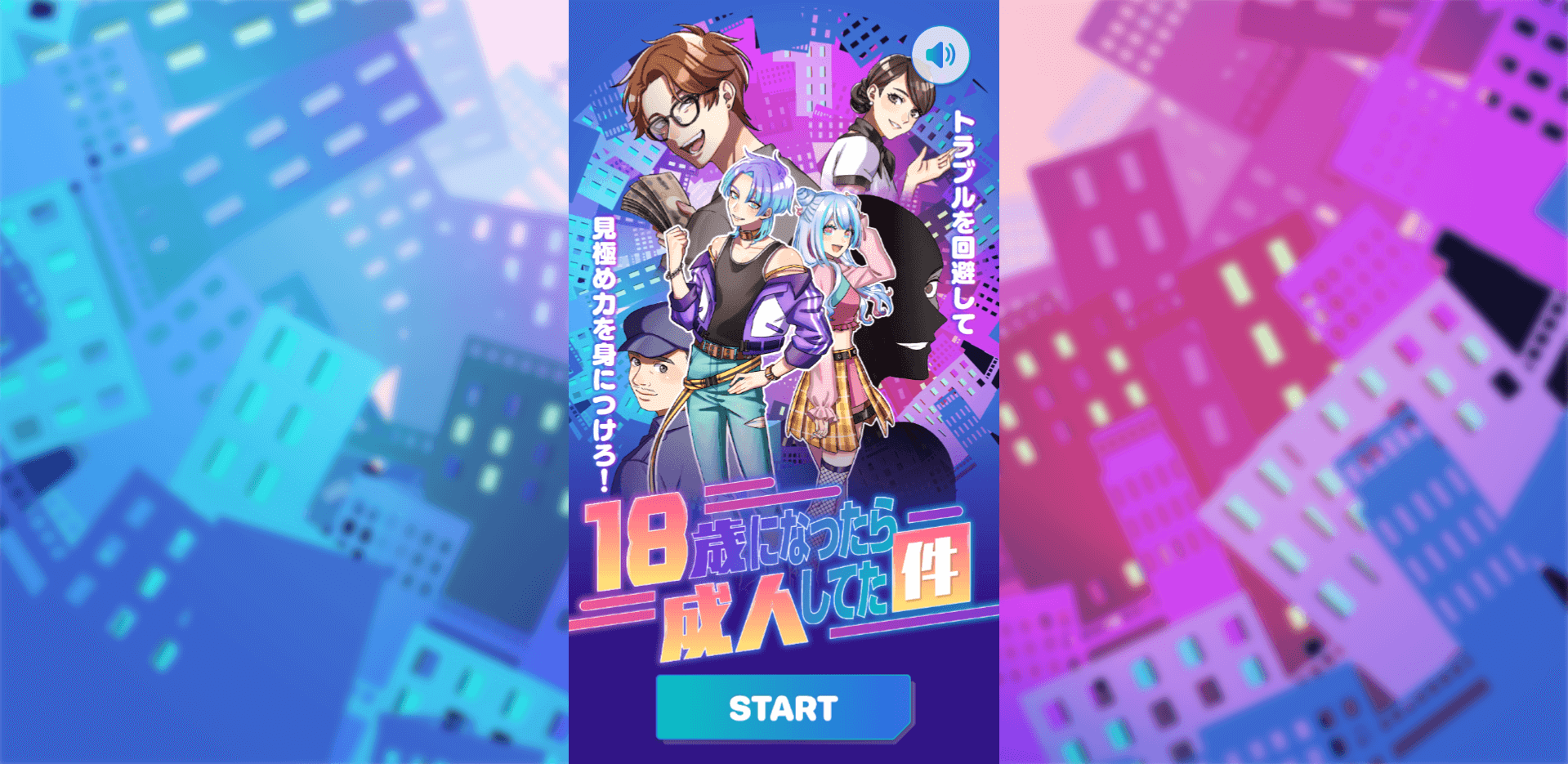 アクアスターでは2022年に成人年齢が20歳から18歳に引き下げられたことをきっかけに、新成人として起こりうるトラブルを疑似体験できるシミュレーションゲーム「18歳になったら成人してた件」(兵庫県)の制作と特設サイト制作を担当いたしました。